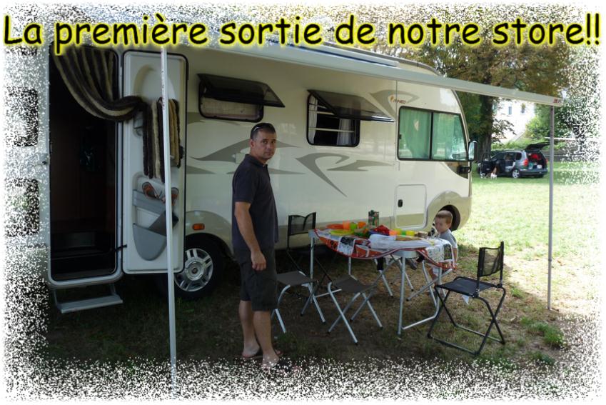 |  Et on a même pu tester le store de notre camping-car (les enfants voulaient à tout prix le sortir déjà la veille à 21h!! ) | |