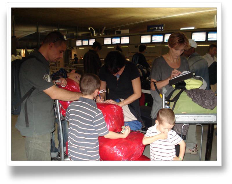 Nous sommes enfin prêts et avons hâte d'arriver à destination. Même si on a mis pas mal de choses dans le camping car, nous partons "relativement" chargés avec exactement 14 sacs à dos, valises et petits bagages à main. En théorie, on monte dans le train, on descend à Charles de Gaulle, on monte dans l'avion, on prend un taxi et on arrive à l'hôtel et on dépose nos bagages. En réalité, c'était plutôt, pour ceux qui connaissent le recrutement dans la légion: la marche de 50kms, avec sac à dos de 20kg et grosses ampoules aux pieds J'avoue, j'exagère un peu, on n'a pas eu d'ampoules