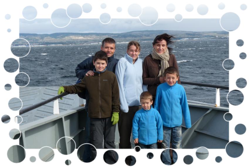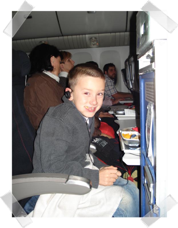 Nous embarquons donc à 7h15, les enfants dorment toujours................ Une fois tout le monde réveillé, nous profitons (c'est un verbe que j'emploie souvent, me semble-t-il!!!) de ces 2h pour travailler les cours du Cned tous ensemble, même Gaétan s'y est mis