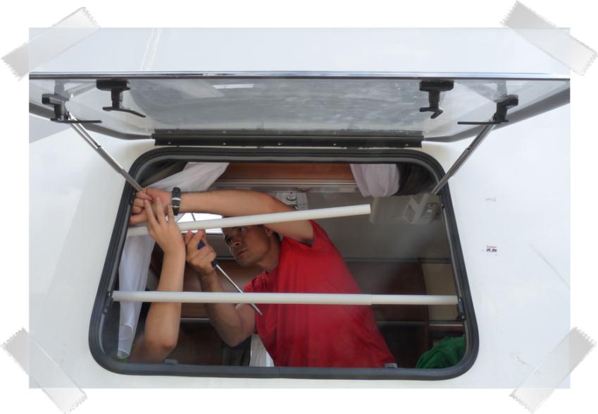 La baie a été soigneusement empaquetée et c'est avec plaisir que nous trouvons la baie, la moustiquaire, le store et un rideau pour l'espace nuit de Sara, merci à Mr Simon.