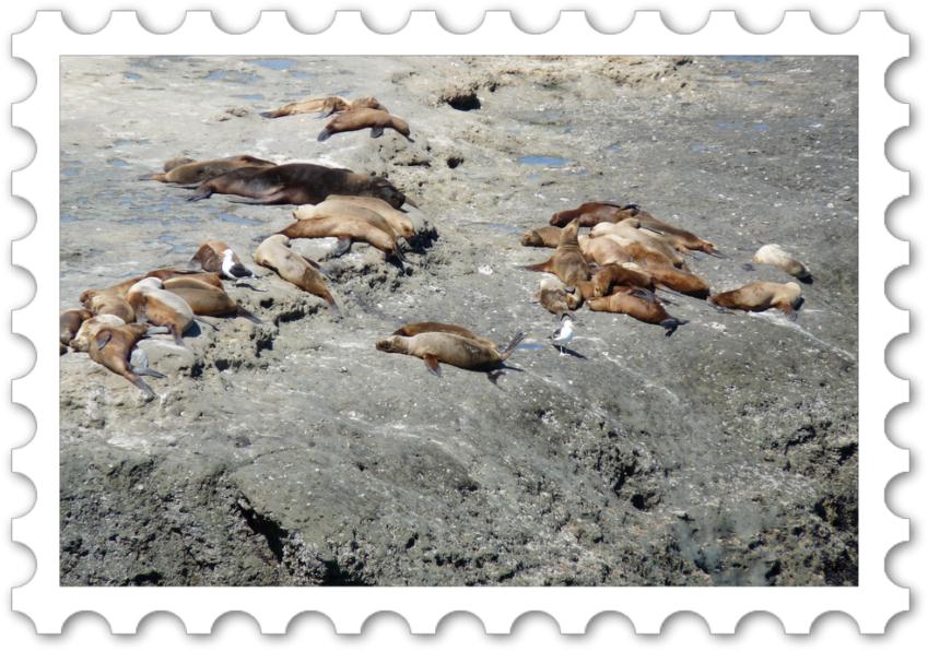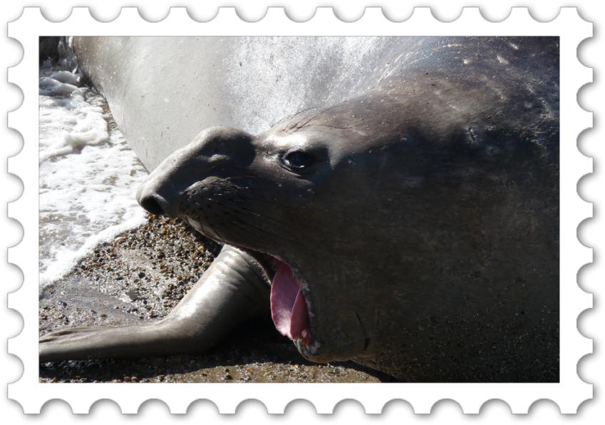 |  | | |  | | |   27 octobre 2011Aujourd'hui, c'est journée "éléphants de mer"  Bien couverts, car le vent souffle assez fort, nous commençons notre descente et apercevons déjà les bêtes ! Nous nous retrouvons à quelques mètres d'elles, ces masses de plusieurs tonnes sont impressionnantes, nous faisons donc très attention même si la tentation de nous rapprocher encore est forte  Les petits sont très attendrissants et les enfants adorent.