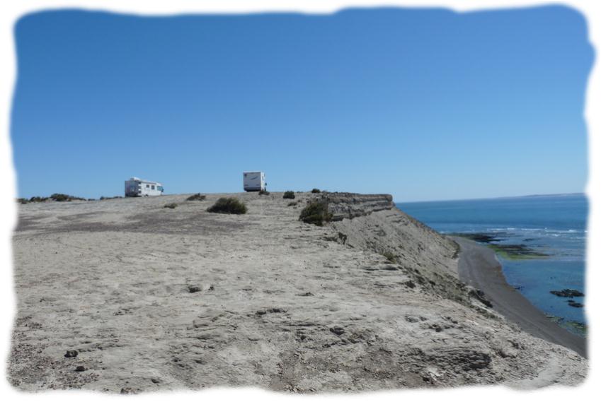 Nous continuons à suivre la piste en passant par la caleta Valdès, une avancée de mer qui nous offre de très beaux paysages et des pingouins.