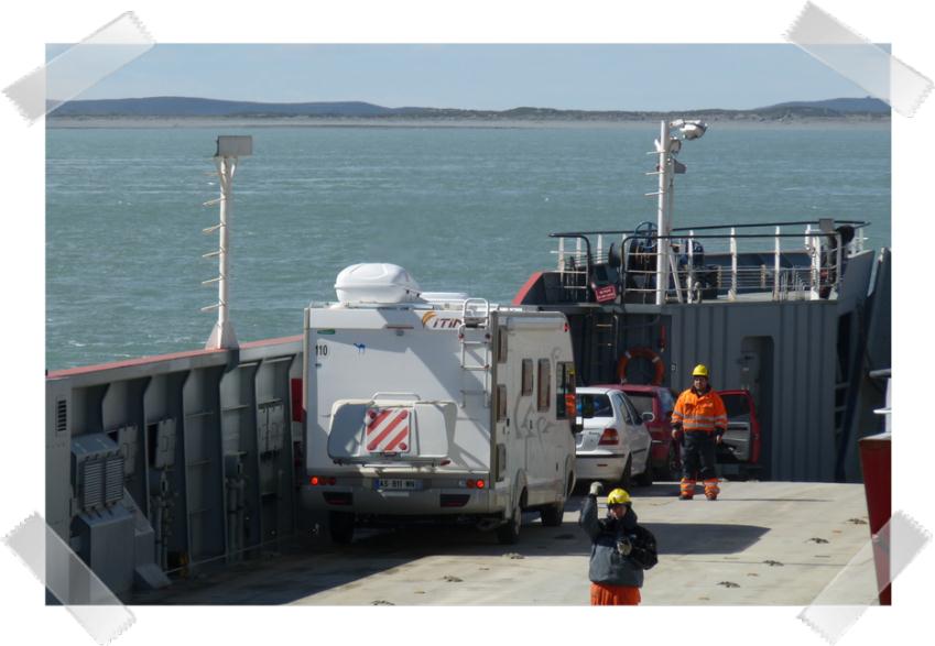 | |  10 novembre 2011 |  Lever 6h30, seulement pour José car il faut se présenter au bureau du ferry pour payer et avoir sa place C'est bon, nous avons notre place ( en payant 72100 Pesos chiliens, soit 105€ pour 2h20 de traversée). Les prix varient selon les véhicules (taille......) et même si nous ne sommes pas des poids lourds, nous prenons de la place, du coup nous payons plus cher Dommage